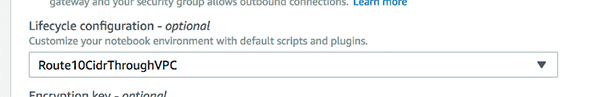 If we restart the notebook the changes won’t persist. Only the changes made to the ML storage volume are persisted with a stop/start. Generally, for the package and files to be persisted, they need to be under “/home/ec2-user/SageMaker”. In this case, we’ll use a different feature: lifecycle configuration to add the route any time the notebook starts.