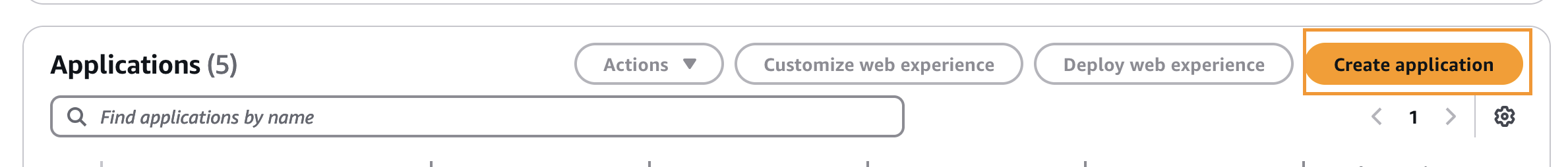 - In the AWS Management Console for Amazon Q Business, choose Create Application.