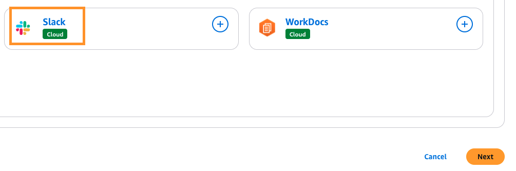 - Scroll down the list of available connectors and select Slack and then choose Next.
