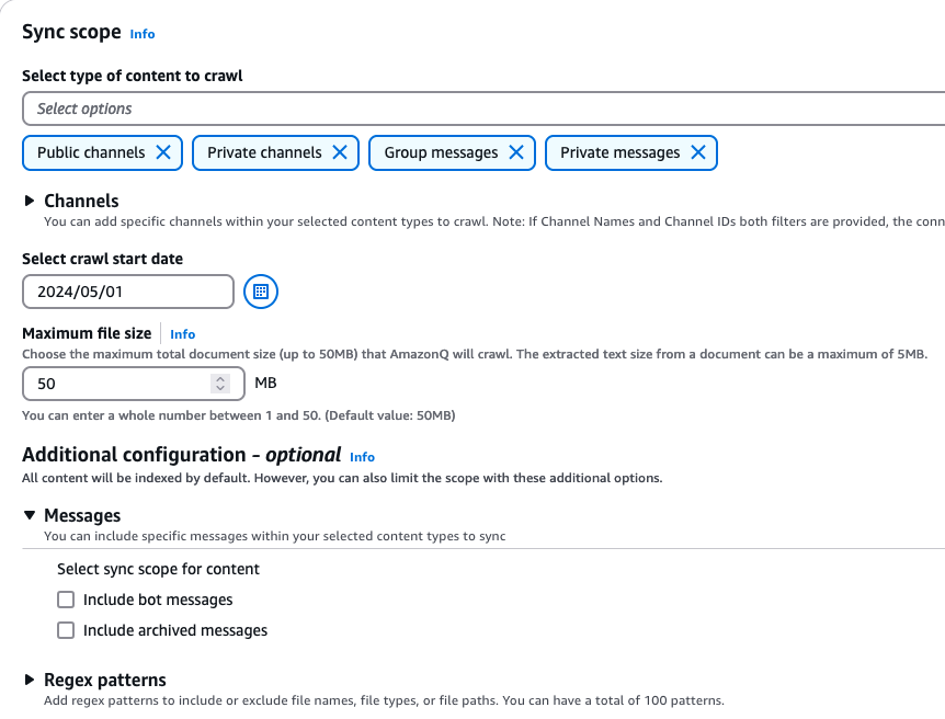 - You can include specific Messages, such as bot messages or archived messages to sync.