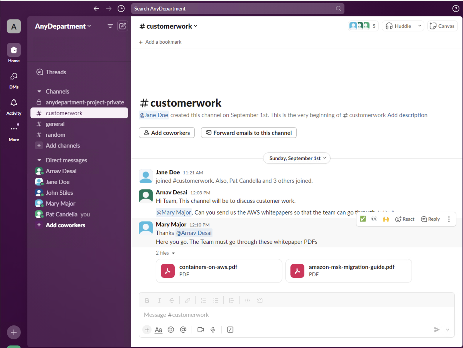 - In the Slack workspace, there is a public channel, the #customerwork channel that all users are members of. The