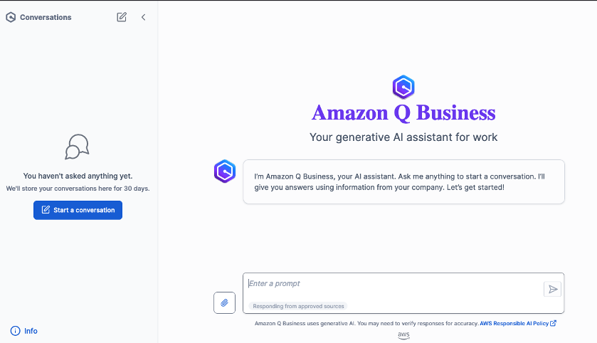 - Upon successful sign-in, you will be signed in to Amazon Q Business.