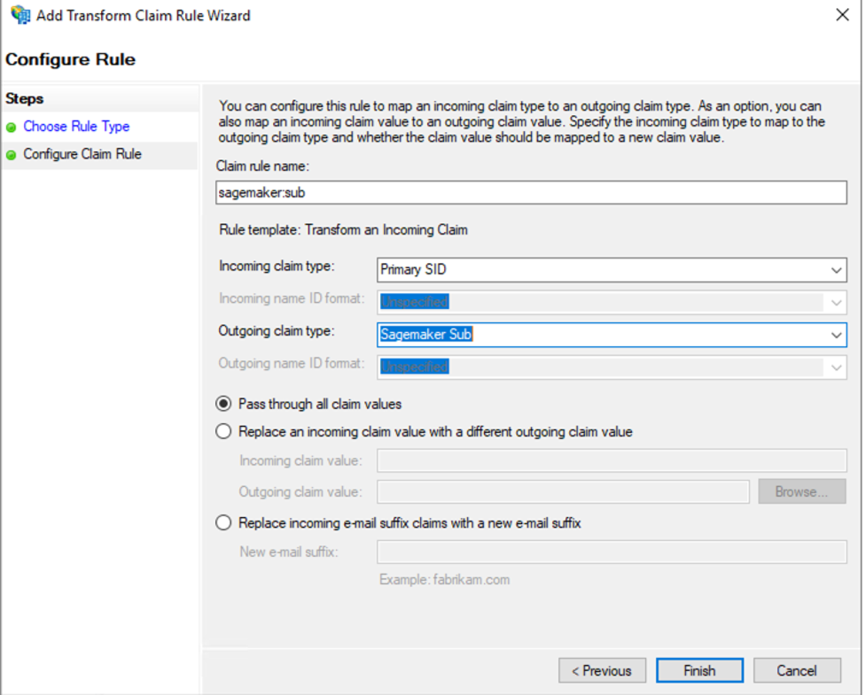 - For Outgoing claim type, choose the claim Sagemaker Name.