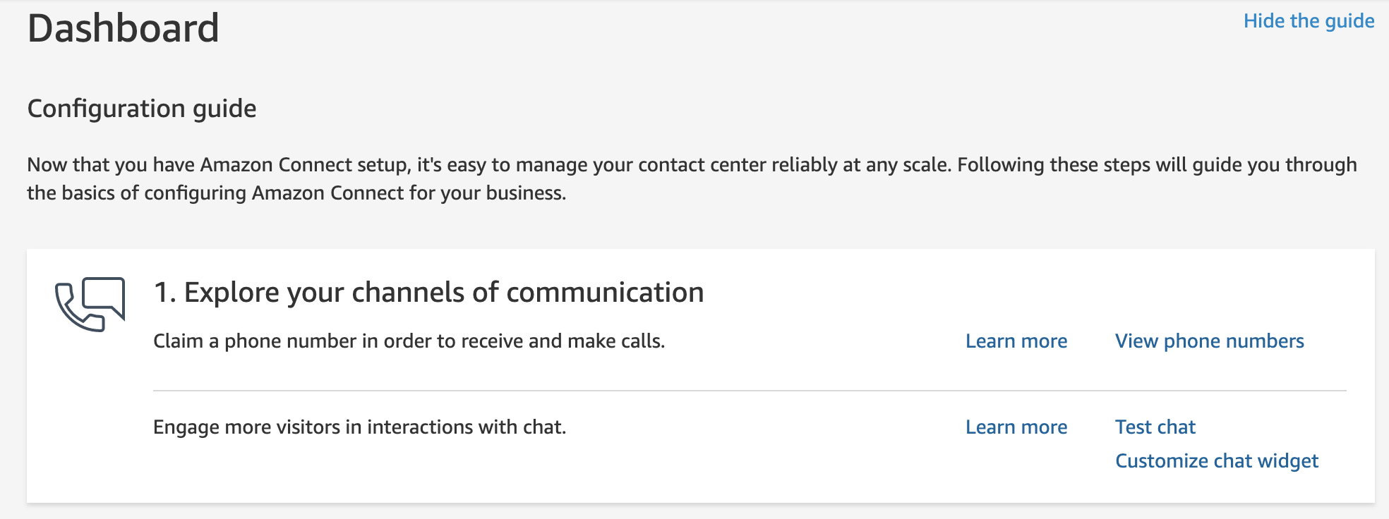 - Launch Amazon Connect in the AWS Console.