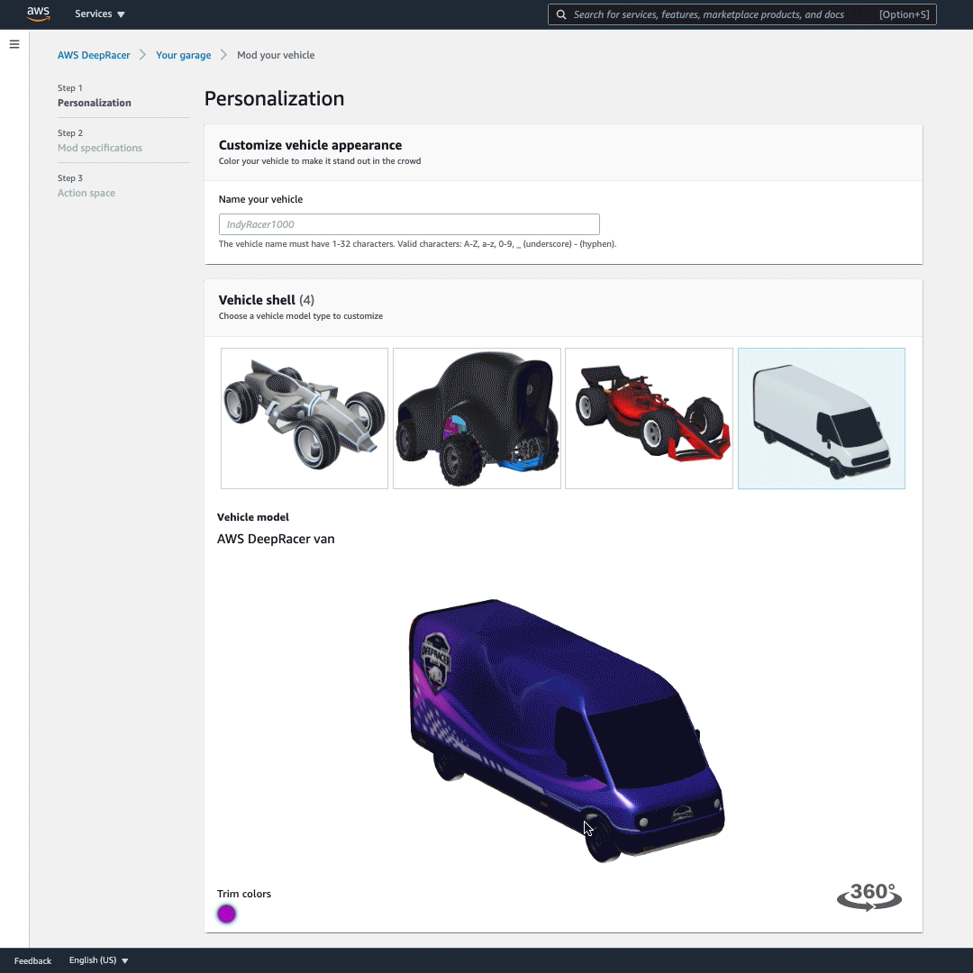 Win a digital car and personalize your racer profile on the AWS DeepRacer console