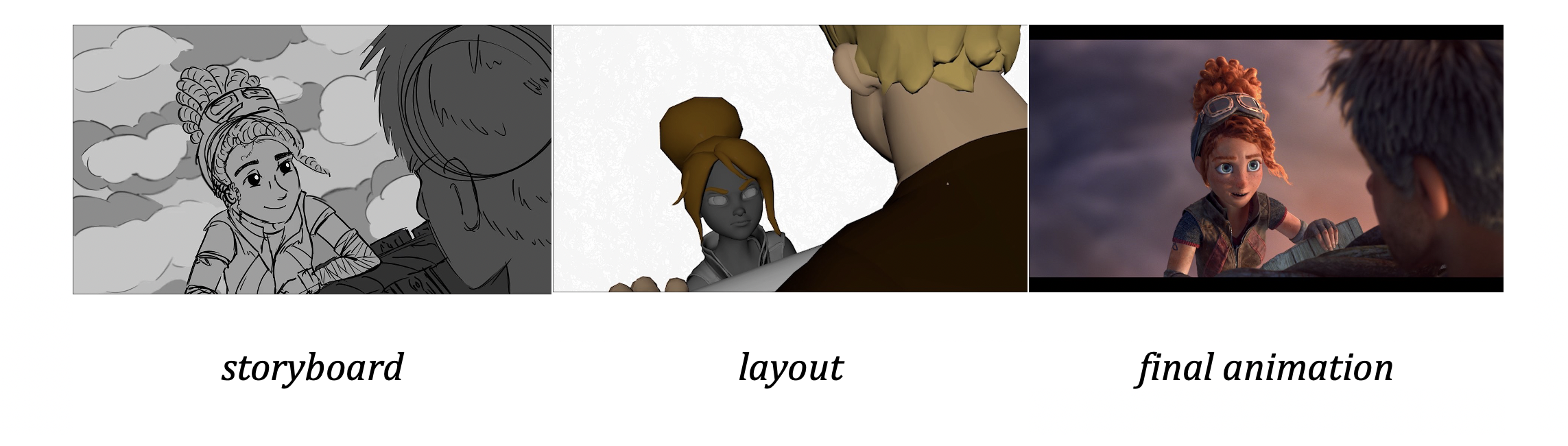 Layout/previs is all about experimenting and refining the scope and composition of the shots in the film. Because it is usually done with simplified assets and environments, the layout can be produced quickly and efficiently. This early experimentation and planning helps save time and money during production by providing a solid foundation to build on.