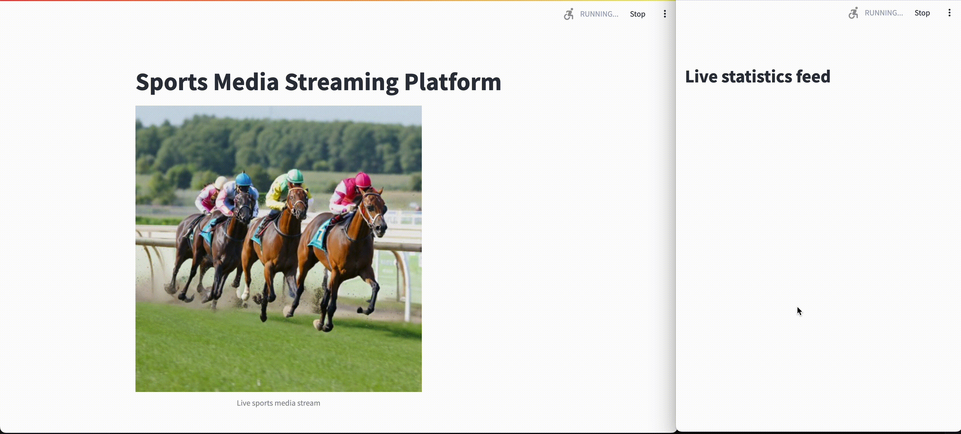 The timestamp allows us to anchor each update to the progress of the event, while the other metrics capture details that are needed to provide an engaging race day experience for fans. Setting a number_competing_horses parameter in each data feed establishes how many participants are tracked, to leverage cases where some horses may have crossed the finish line or, rather, have abandoned the race. Additionally, each data feed contains a race_finished boolean that defaults to False, and is switched to True once all the horses have crossed the finish line to indicate the conclusion of the event.