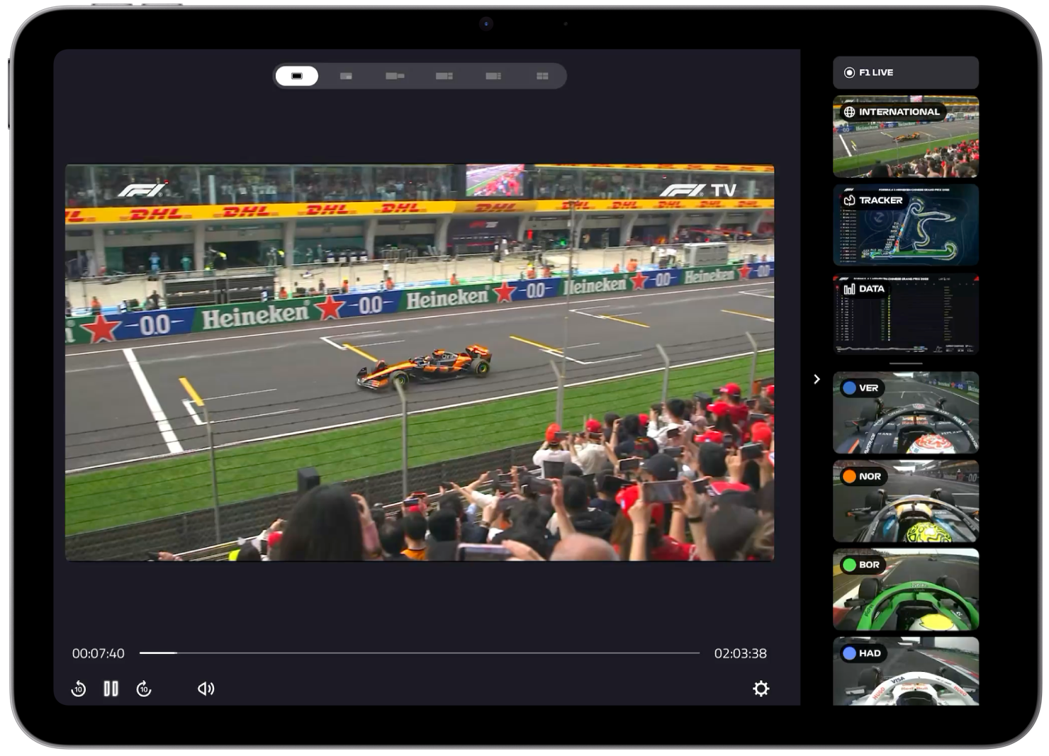 With this configuration, F1 TV Premium viewers can enjoy all the action in the race perfectly synchronized from different feeds, no matter what’s happening on the track.