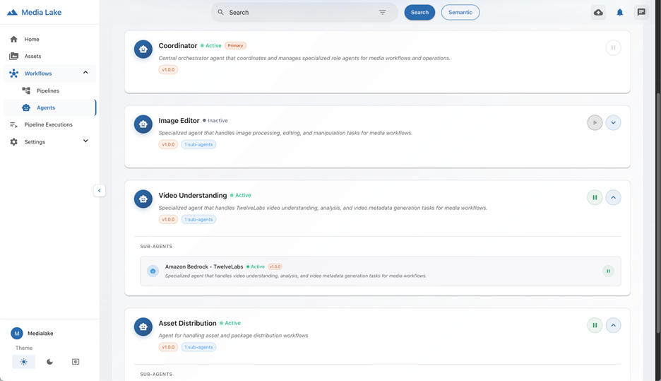 We are updating the guidance with agentic AI capabilities through Amazon Bedrock AgentCore (Preview), transforming how media teams interact with their media and workflows. Agentic AI abilities in a media lake allow for multiple agents to complete workflows, increasing business agility. Instead of navigating multiple interfaces and manually coordinating between systems, teams can now execute multi-step workflows through natural language requests.