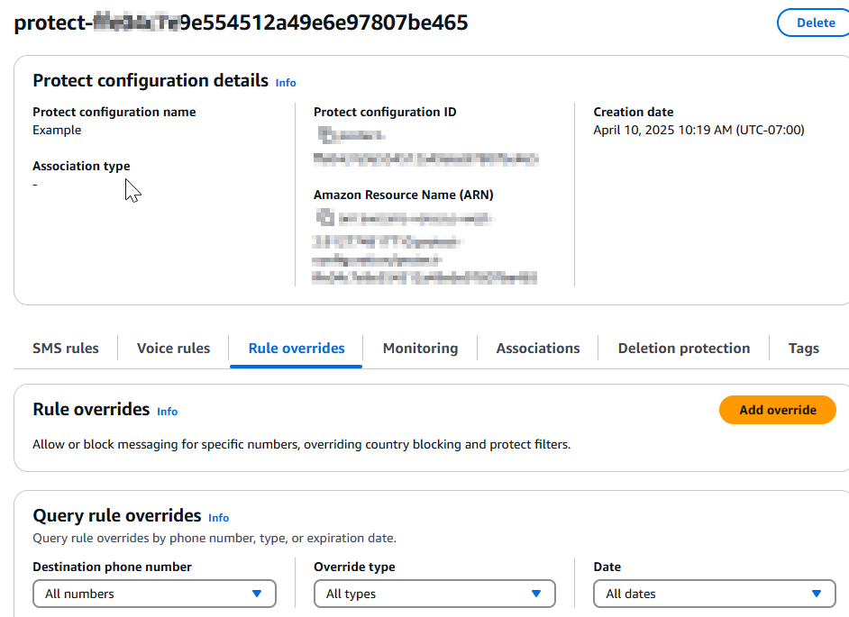 - Note: To use a protect configuration with other AWS services to send messages, like Amazon SNS, Amazon Connect, or Amazon Pinpoint, you need to set your protect configuration as the account default