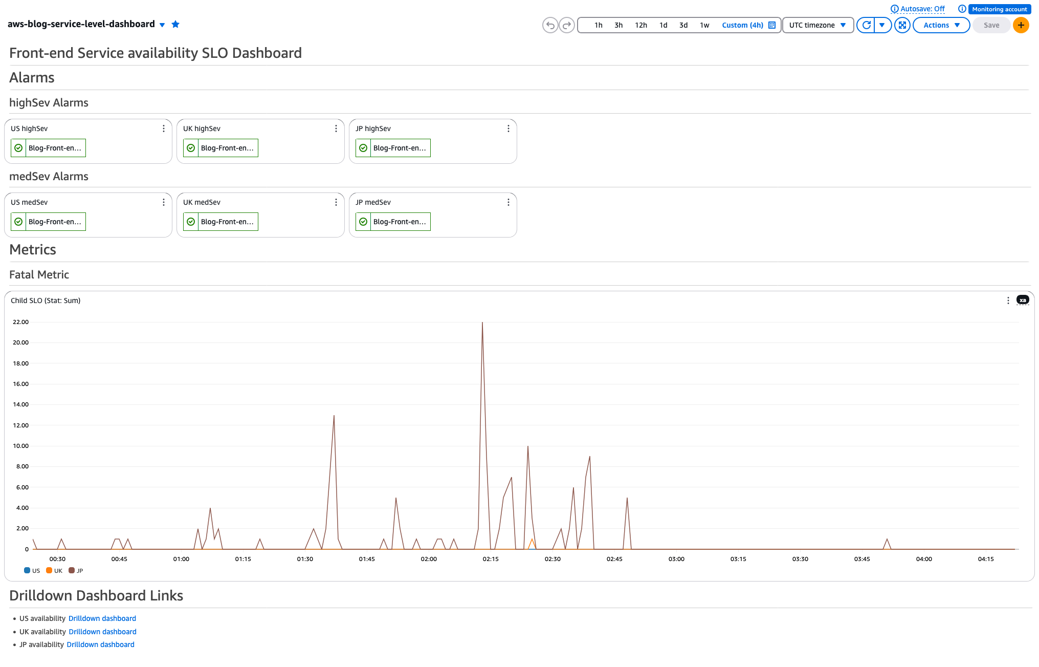 Here is how a Drilldown Dashboard looks. This is for Front-end Availability for US COUNTRY.