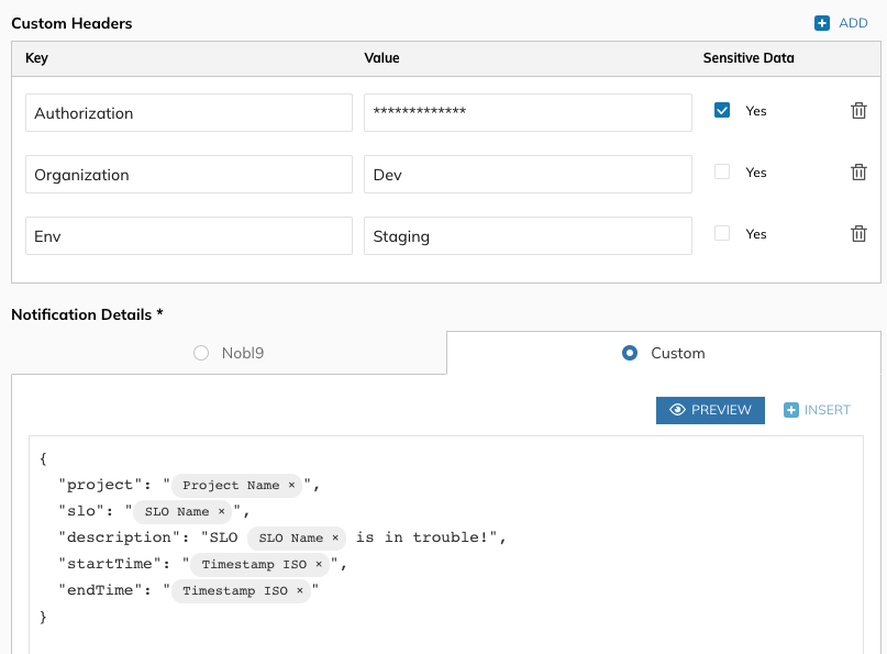 Figure 14. Webhook Alert template configuration on Nobl9 console.