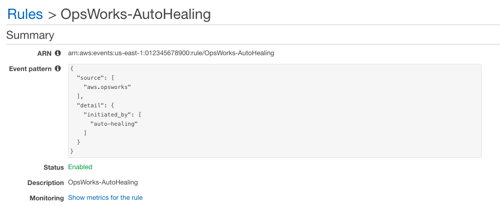 2. Create a rule named OpsWorks-AutoHealing by running the following command.