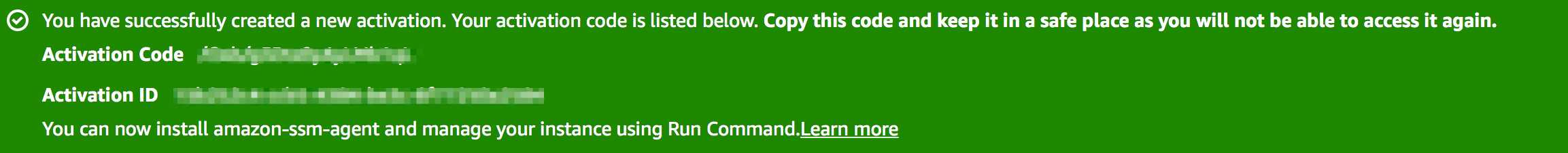 sudo amazon-ssm-agent -register -code “activation-code” -id “activation-id” -region “region”