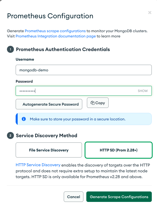 - MY_PROM_USER — user name from MongoDB Atlas Prometheus configuration (e.g. prom_user_XXXXX)