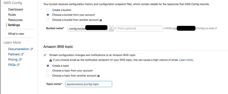 We can stream configuration changes and notifications to an Amazon Simple Notification Service (SNS) topic. In the AWS Config console, in the left navigation pane, choose Settings, and then choose the Amazon SNS topic.