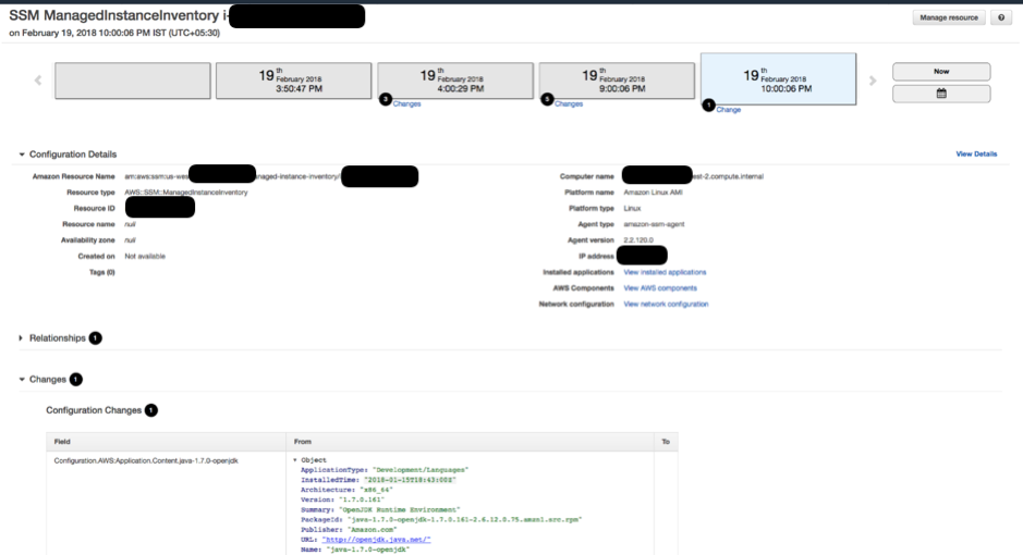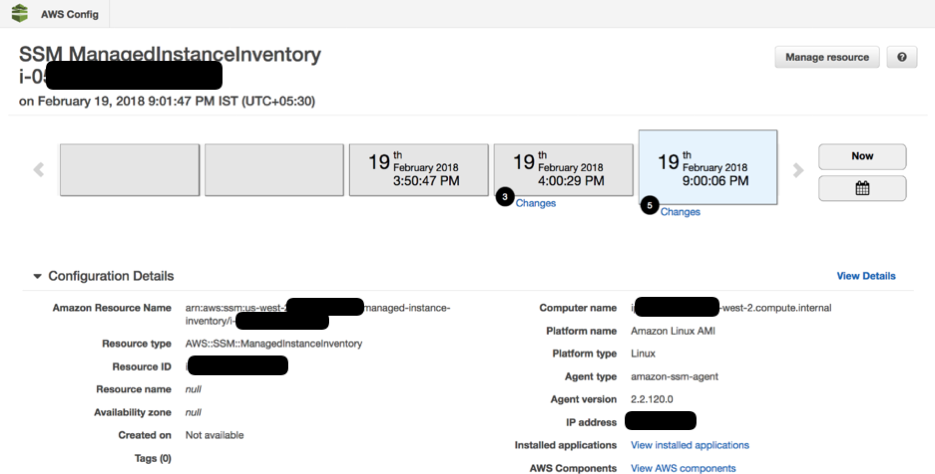 - Wait for next scheduled Inventory collection on the instance. Then in the AWS Systems Manager console, on the left navigation pane, choose Managed Instances, then choose EC2 instance, and choose Inventory to ensure that the application is showing as installed on the system. Now choose EC2 instance and go to the AWS Config console. Note that it might take a few minutes for the changes to show up in the timeline of changes in AWS Config, based on the schedule we selected earlier.