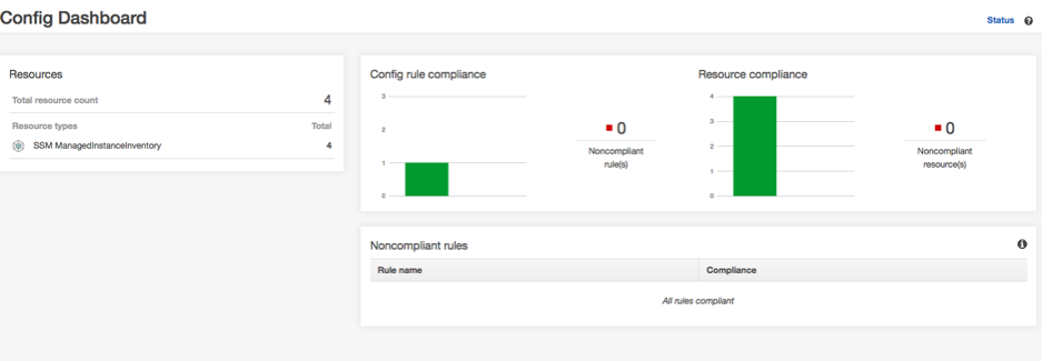 The AWS Config Dashboard will also show the overall compliance across all managed instances.