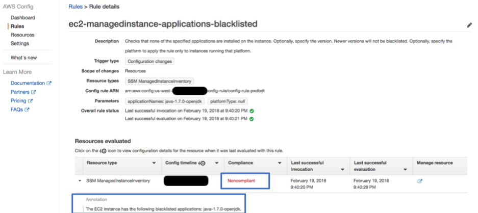 In this blog post, we’ll walk you through an example that shows how to use AWS Systems Manager Inventory with AWS Config to detect and track changes in applications installed on an instance, and with AWS Config and Config rules to detect prohibited (aka blacklisted) applications installed on your managed instances and report non-compliance.