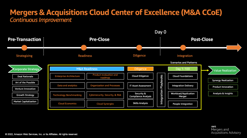 - The M&A CCoE uses best practices and learnings from these processes to create repeatable practices for future M&A transactions.