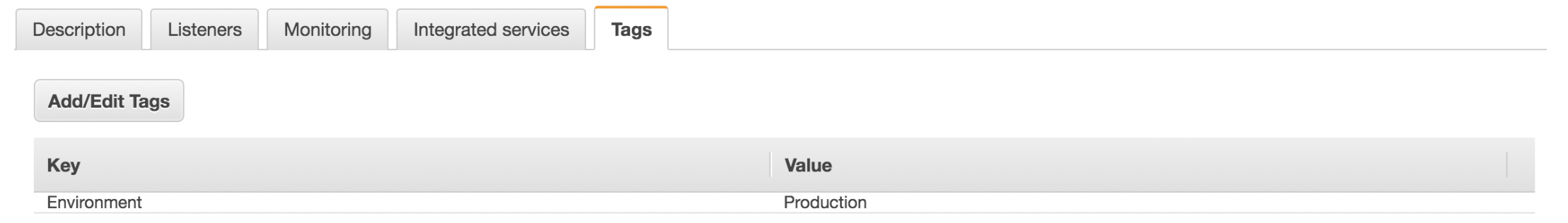 Choose Load Balancers in the left navigation pane, and create an Environment tag for each load balancer in the same way.