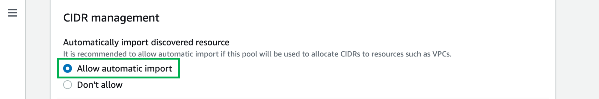 Fig. 8 – Allow IPAM to import of VPC CIDR allocations