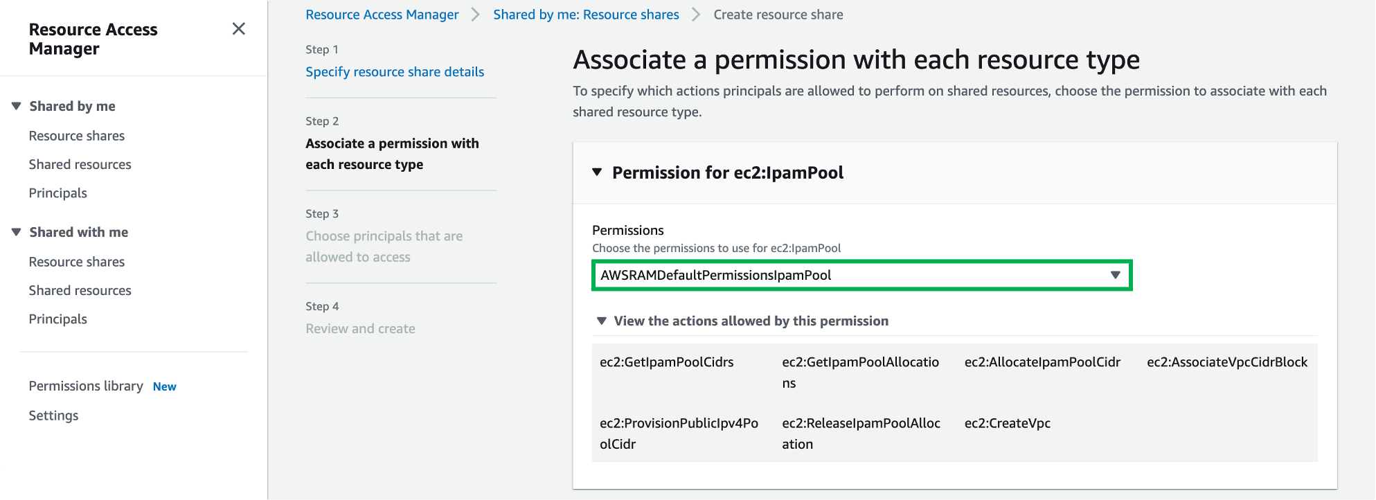 Fig. 17 – IPAM pool RAM resource share – permissions