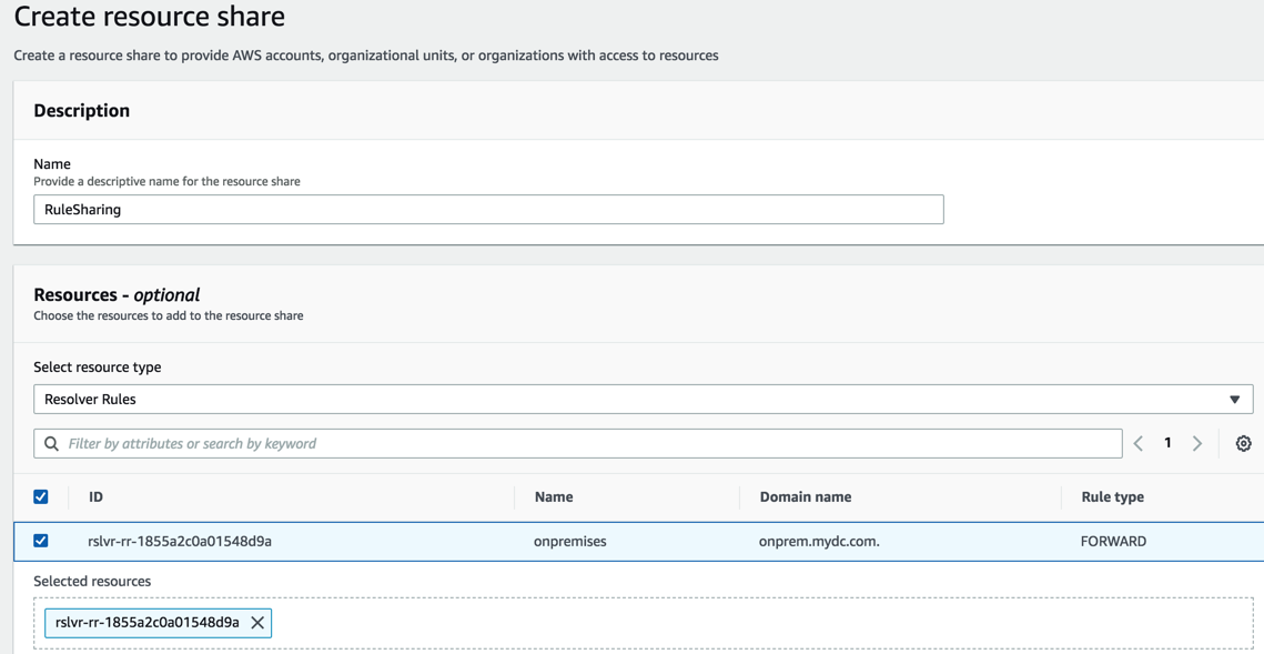 - In this setup the spoke VPCs are across different accounts, you can share the forwarding rules with the VPCs in other AWS accounts using shared rules through AWS Resource Access Manager (AWS RAM). The following screenshot shows forwarding resolver rules shared with VPCs for multiple accounts using AWS RAM: