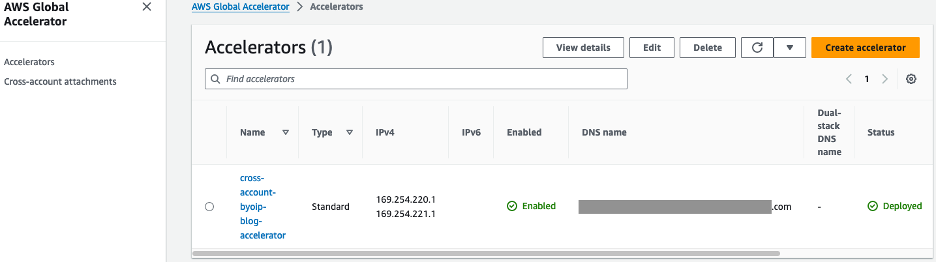 Figure 4. Screenshot of the Accelerators page in the AWS Global Accelerator console