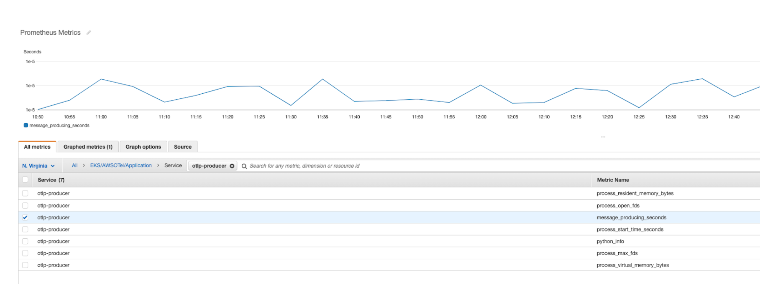 - Check the box next to the message_producing_seconds metric.