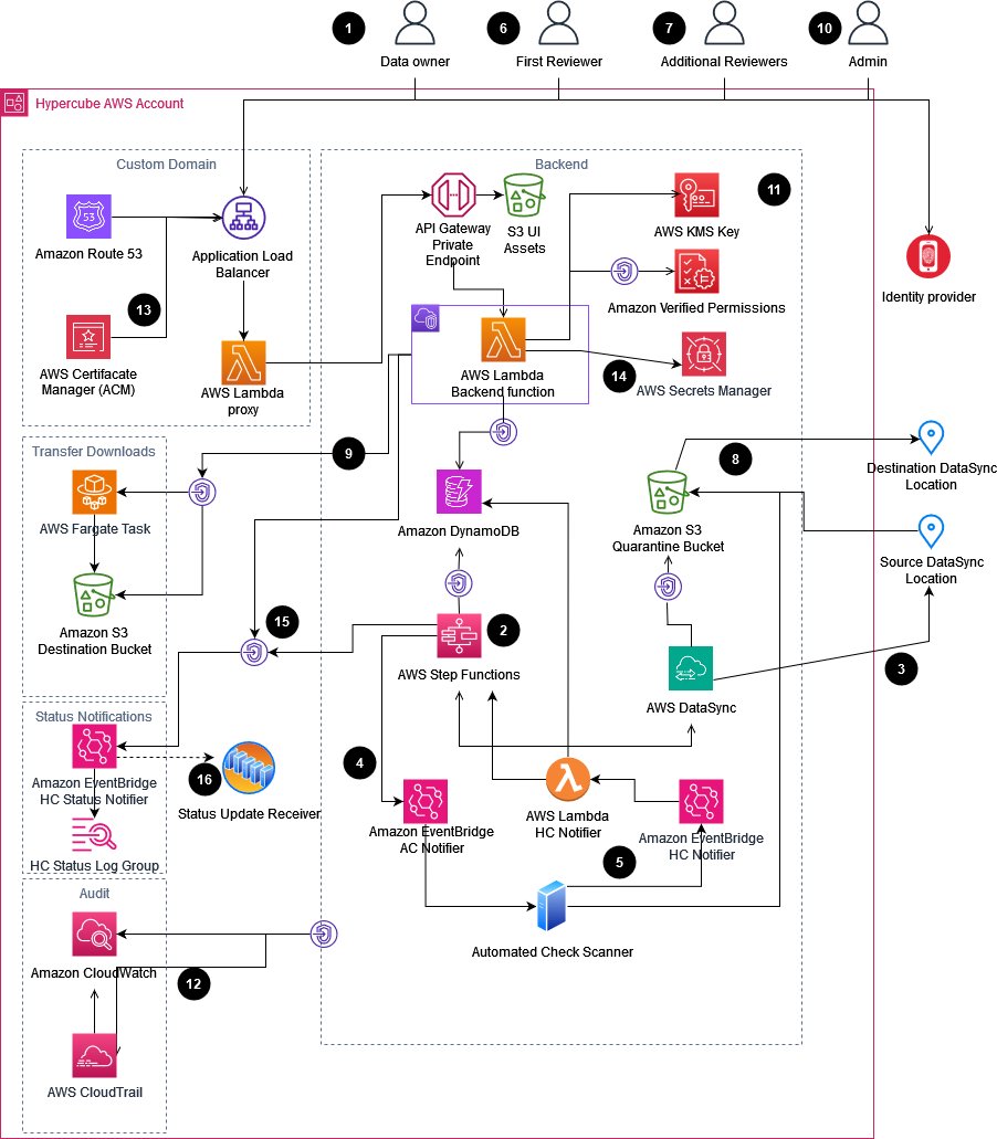 DRTC uses AWS DataSync to facilitate the secure transfer of data. When a data transfer is initiated, the data is first placed in a quarantine location, where it undergoes the review and approval process. After it’s approved, the data is then securely transferred to the destination through virtual private cloud (VPC) endpoints to remain private.