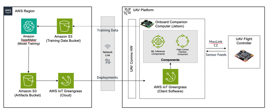 AI/ML model retraining and evolution: The post-mission phase enables continuous improvement through automated model retraining using operational data. Amazon SageMaker AI provides a fully managed platform where defense organizations can quickly retrain and deploy updated models based on real-world mission data. This creates a powerful feedback loop where each operation improves system performance for future missions.