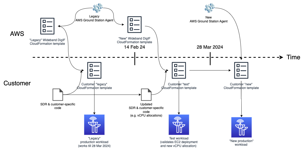 - Final state: All customer Wideband DigIF workloads are provisioned with the customer new production CloudFormation template and use the new agent version.
