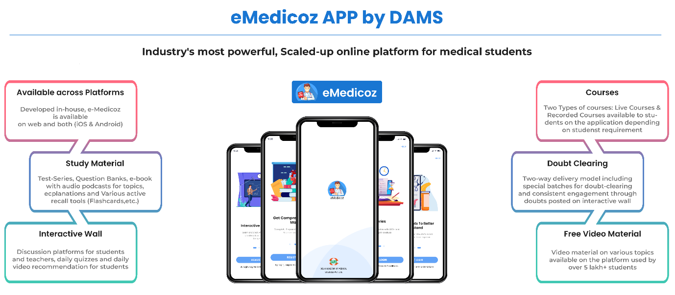 Created by Dr. Sumer Sethi, a radiologist, entrepreneur, and the chief executive officer (CEO) of DAMS, the eMedicoz app helps bridge the gap for medical students preparing for various career opportunities at the post-doctoral level. The app offers specialized courses for doctors, dentists, and medical students to study for their specializations, as well as prepare for the United States Medical Licensing Examination® (USMLE®), the National Exit Test (NExT), and the NEET PG exams, all in one place. The eMedicoz app also offers no cost medical education videos and an interactive discussion platform for students and doctors to discuss medical cases and questions with their seniors and peers from around the world.