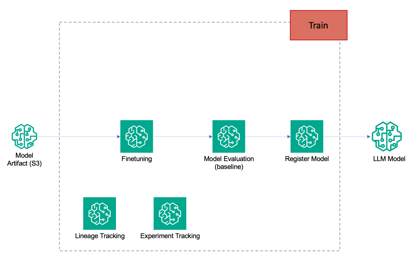 The training modular design accelerates experimentation during model fine-tuning. This allows researchers to easily try out different datasets, fine-tuning parameters, and evaluation criteria. This flexibility helps to find the optimal model configuration for the specific intended tasks for the LLM model. Registering the model makes it available to be governed and observed using tools such as Amazon SageMaker Clarify, Model Cards, and Model Dashboard.