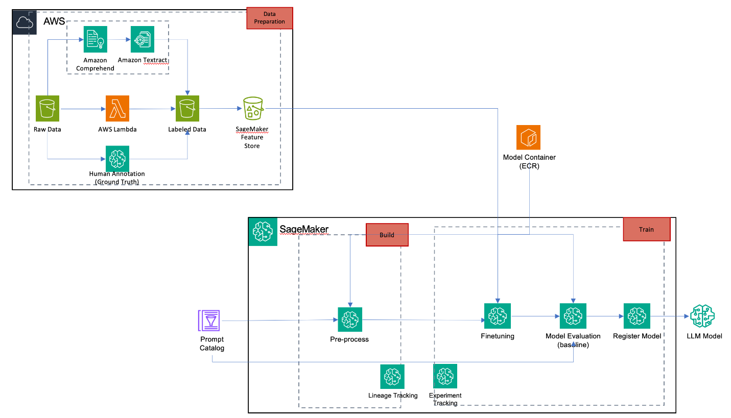 Figure 3. Architecture diagram of model for training. The major components are SageMaker for fine-tuning key functions and Amazon S3 for storage.