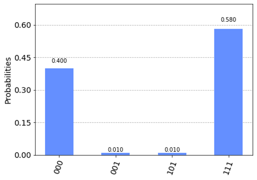 As expected, we only see states where the qubits are all 0 or all 1, in a roughly 50-50 split.