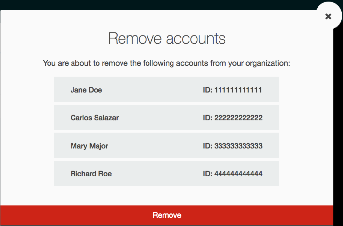 Information and permissions required to remove accounts from an organization