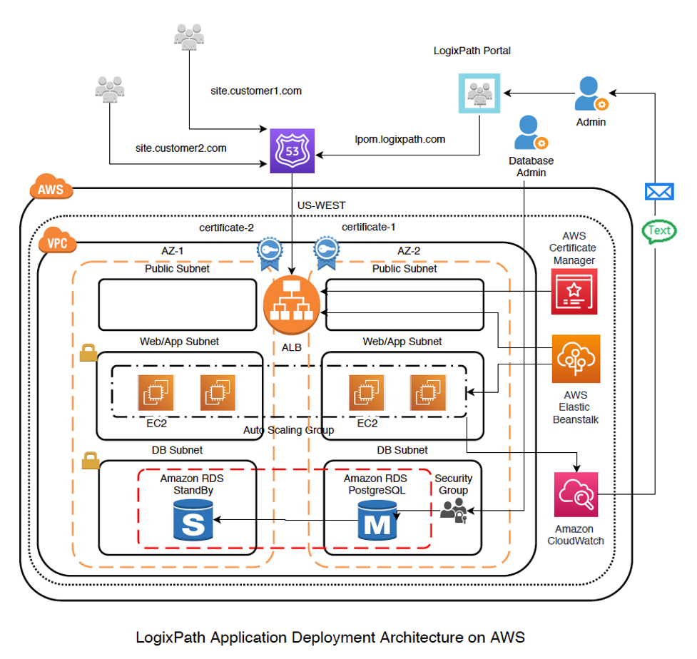 The other services we loved and adopted as part of the migration were AWS Certificate Manager and Amazon Route 53. Since LogixPath software provides SMEs customers with the company website/portal builder and hosting capability, we needed to map multiple custom domains and certificates to a single web application. So, our requirement was to have a service that helps us manage multiple domains and certificates in an easier and cost effective manner. In PWS, though we could route multiple custom domains to one web application, we could not do so for the SSL certificates management for the following reasons: