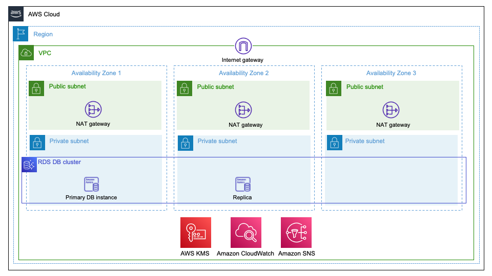 - Places the RDS DB in private subnets. To access the DB, use the bastion host, which is set up by the bastion host template.