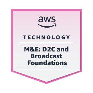 With the AWS M&E Broadcast and D2C Foundations Badge, professionals can demonstrate their expertise in the nomenclature, architecture, and primary workflows for these specialty areas of the M&E ecosystem. Companies can use the M&E Broadcast and D2C Foundations Badge to identify qualified employees and AWS Partners, and use the training – created by AWS M&E Cloud Specialists – to upskill their workforce.