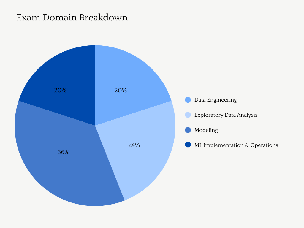 The exploratory data analysis domain focusses on critical skills for transforming raw data into ML-ready insights. Candidates must demonstrate proficiency in data preparation, feature engineering, and techniques for uncovering hidden patterns in datasets. The domain assesses your readiness to handle data preprocessing, normalization, and feature selection essential for improving ML model performance.