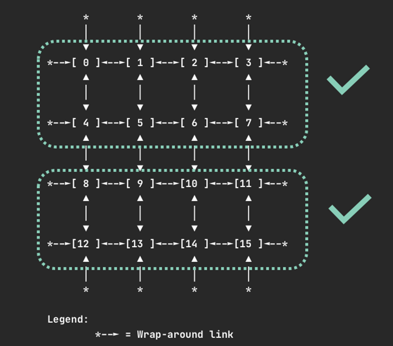 同样,当请求 8 个设备时,会找到 [0,1,2,3,4,5,6,7] 或 [8,9,10,11,12,13,14,15] 这样的组合。这些分配方案确保了任务使用的设备都处于同一个高速互联域中。