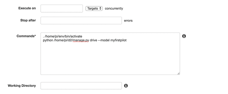 选择 RunCar 并手动选择要运行的 Raspberry Pi (托管实例具有前缀“mi”)。这将从您在 Raspberry Pi 上创建的文档运行命令,无需使用 SSH 连接到 Raspberry Pi。