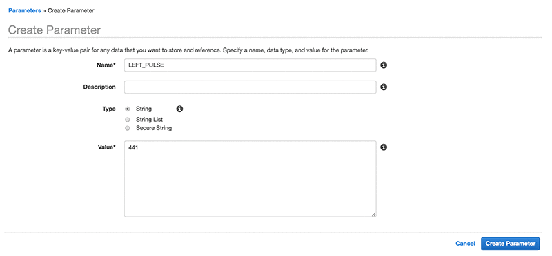 我们不必在 our /home/pi/d2/manage.py 脚本中对参数值进行硬编码,而是可以将这些值存储在 Parameter Store 内,从而可以轻松更改它们而无需使用 SSH 连接到深度学习实例或 Raspberry Pi。