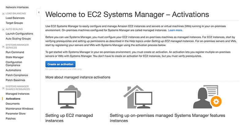 EC2 Systems Manager 提供了各种对您的车非常有用的功能。Systems Manager 可帮助您自动执行功能,从而无需通过 SSH 连接到您的车上的 Raspberry Pi。Raspberry Pi 的设置过程简单,首先是创建激活、安装代理和创建控制某些行为的文档开始。Systems Manager 支持您在不使用 SSH 的情况下运行命令,并且可充当纯文本和加密密钥值对的参数存储。Systems Manager 还有助于确保本地导航正在运行并准备好在启动时执行命令。我们将使用 Systems Manager 自动生成和下载安全地将遥测数据传输到 AWS IoT 服务所需的 AWS IoT 证书。