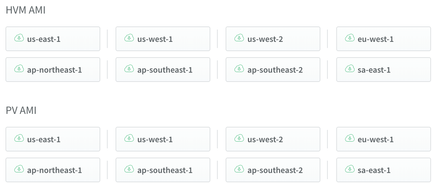 us-east-1, us-east-2, ap-northeast-1, ap-northeast-2, ap-southeast-1, ap-southeast-2, eu-central-1, eu-west-1
