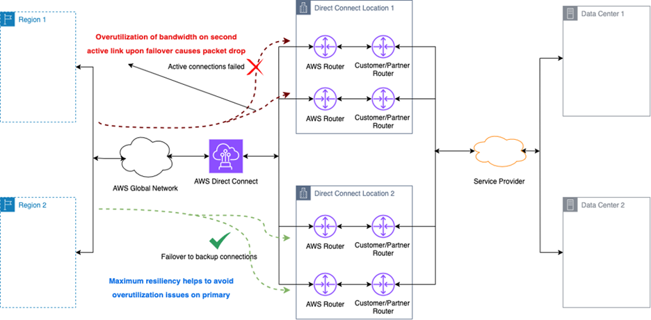 Direct Connect 连接共享的特性决定了你必须主动验证自己的弹性态势。