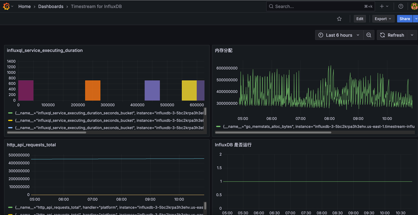 | HTTP API性能指标 | API请求总数 | http_api_requests_total{job=”Amazon-timestream-influxDB”} | |