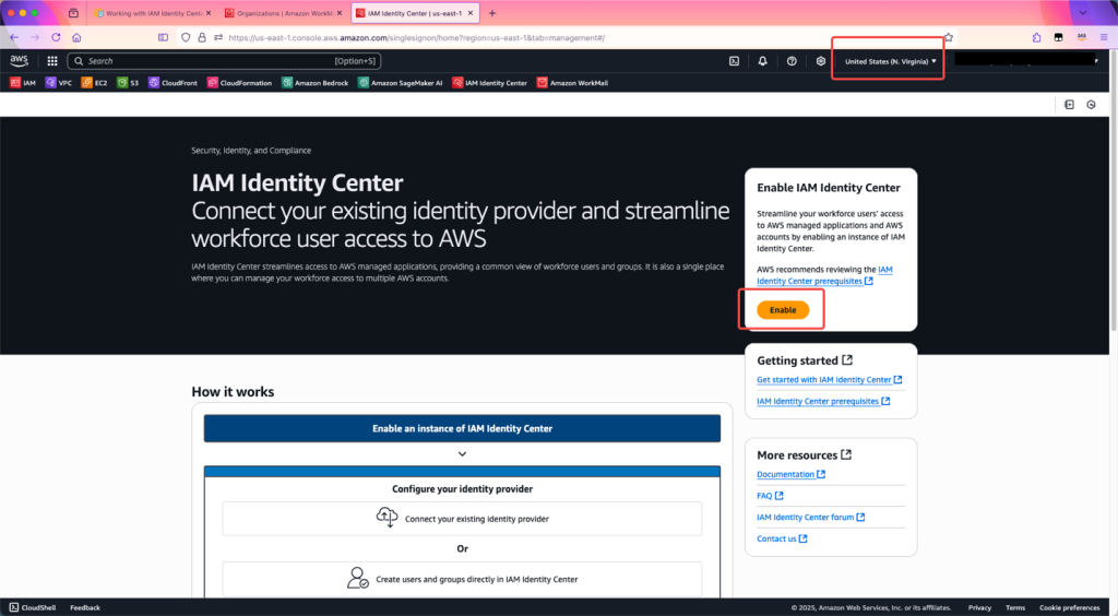 三、开启本 AWS 账户的 IAM Identity Center 服务